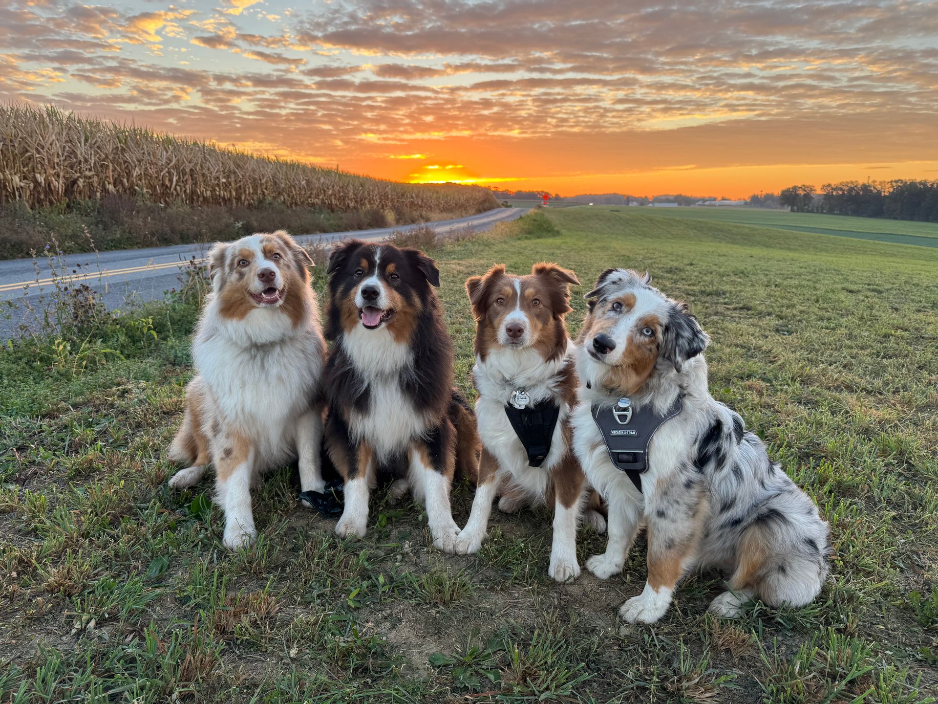 Welcome to Trailside Aussies, your reputable destination for Australian Shepherd puppies. Our commitment lies in upholding exceptional breeding standards for each and every puppy we welcome into the world. Located in the serene landscapes of Eastern Pa., Trailside Aussies is committed to breeding exceptional Australian Shepherds that are not only beautiful but also healthy and well-socialized. Our passion for these intelligent and loyal companions drives us to uphold the highest standards in every aspect of our breeding program, ensuring that each puppy finds a loving home. All of our parents are genetically tested using Paw Prints Genetics or Embark and are cleared through OFA for hips, elbows and eyes. We strive on producing healthy, well-tempered dogs that make perfect companions for families and individuals alike. Our commitment to quality ensures that each puppy is raised with care and attention. We guide prospective owners through the selection process, helping them find the ideal match for their lifestyle. At Trailside Aussies, we prioritize the well-being of our dogs and provide ongoing support to our clients, ensuring a fulfilling experience for both the pet and the owner.